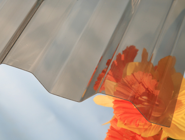 MARLON CS 2UV - trapézové desky z polykarbonátu. Desky mají sílu 0,8 mm a jsou úplně hladké průhledné bez povrchové krupičky. Dodáváme v čiré nebo v průhledné kouřově hnědé barvě.